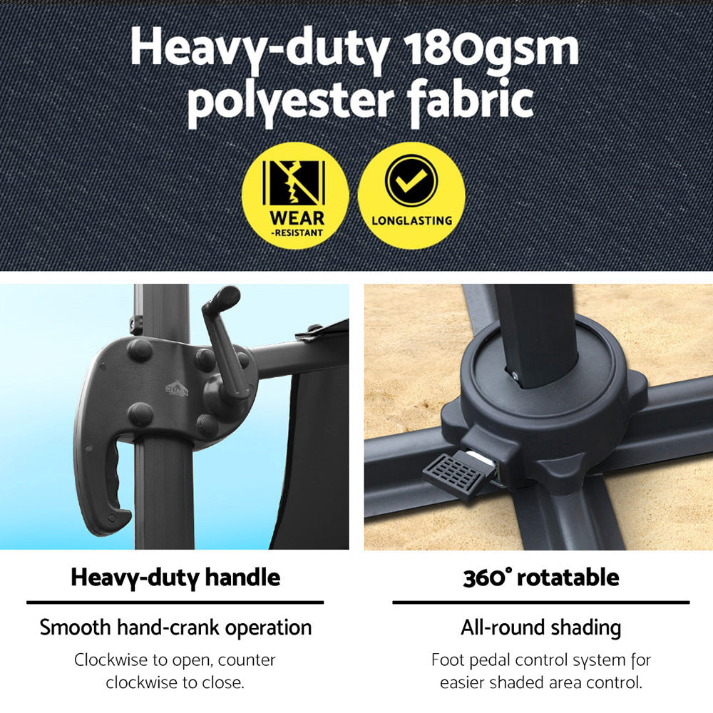 Instahut 3m Outdoor Umbrella Cantilever 360 Degree Tilt Beach Roma Charcoal